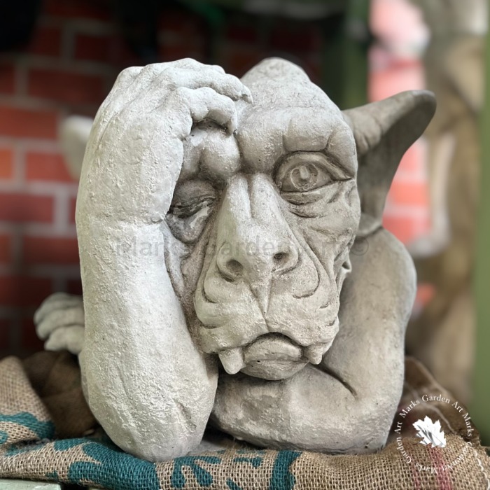 英国製ストーンガーデンオーナメント:頭をかかえるガーゴイル
