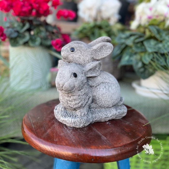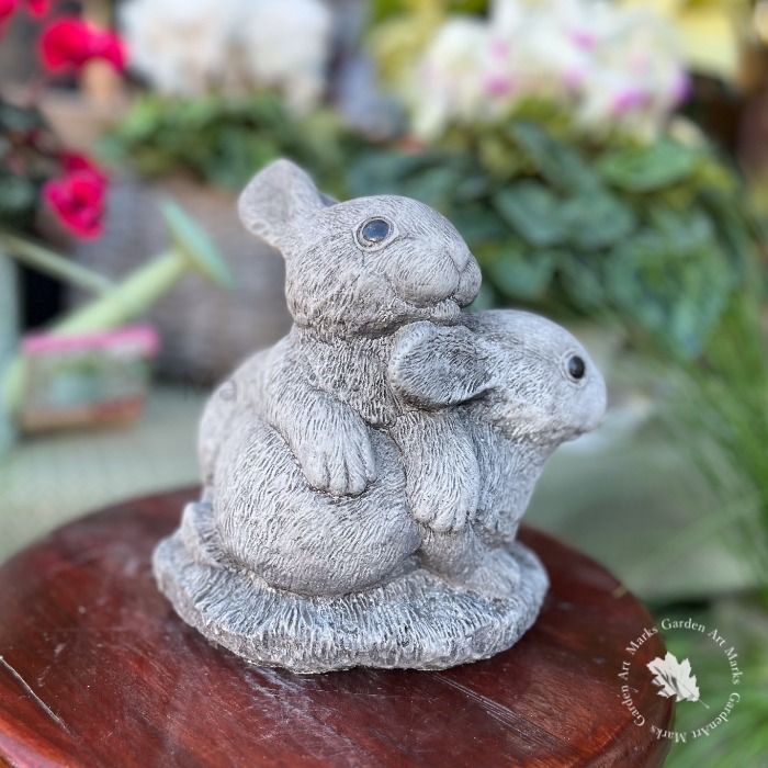 英国製ストーンガーデンオーナメント:ツインバニー(置物)