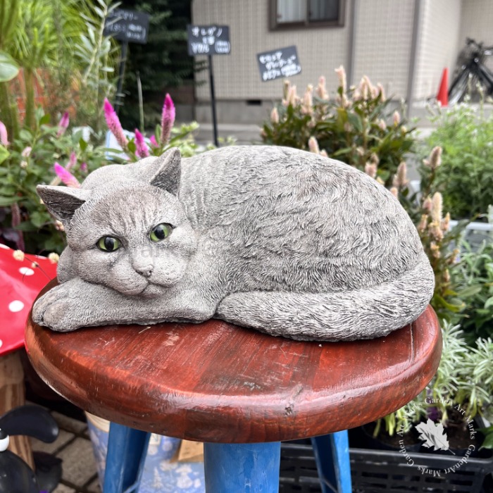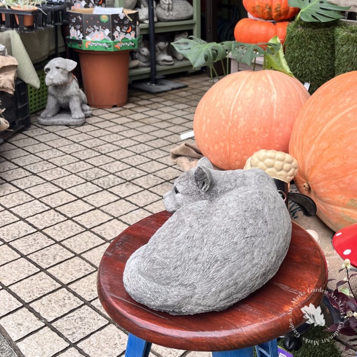 英国製ストーンガーデンオーナメント:丸まった猫(置物)