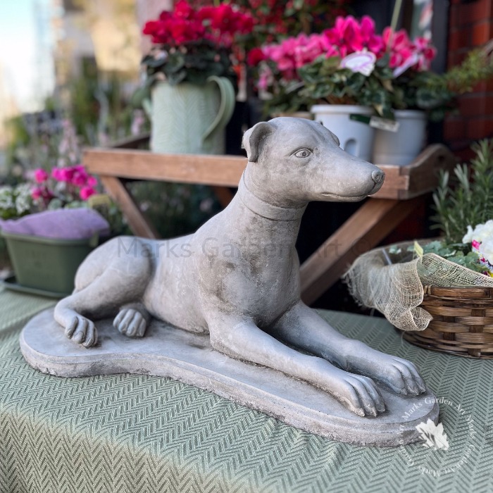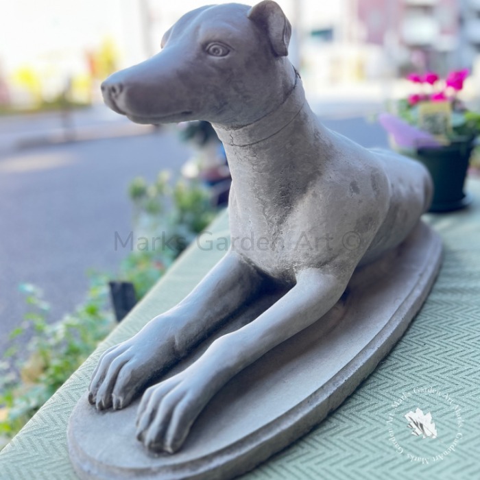 英国製ストーンガーデンオーナメント:グレイハウンド(置物)