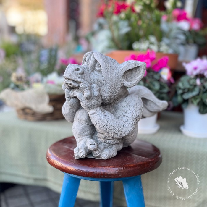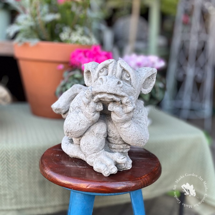 売切 英国製ストーンガーデンオーナメント:困り顔のドラゴン(置物)
