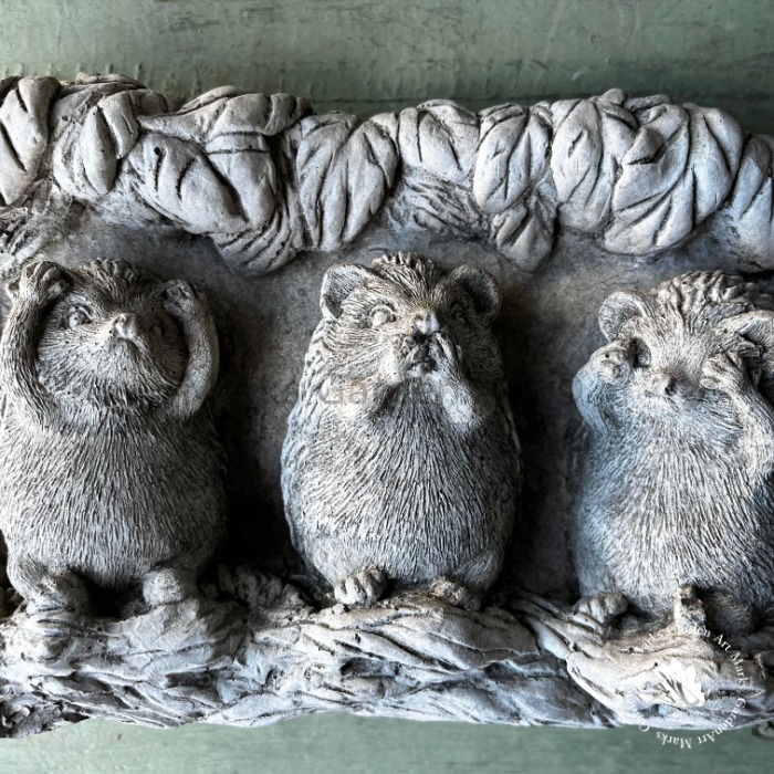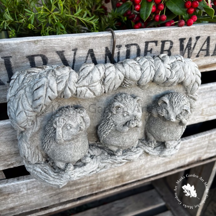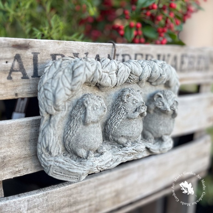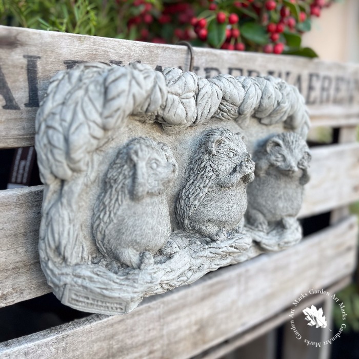 英国製ストーンガーデンオーナメント:レリーフ 賢いはりねずみ(壁掛け)