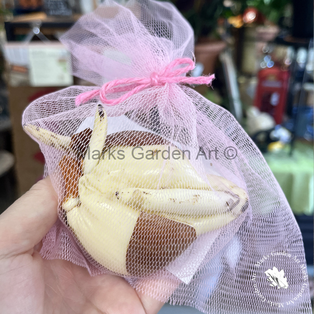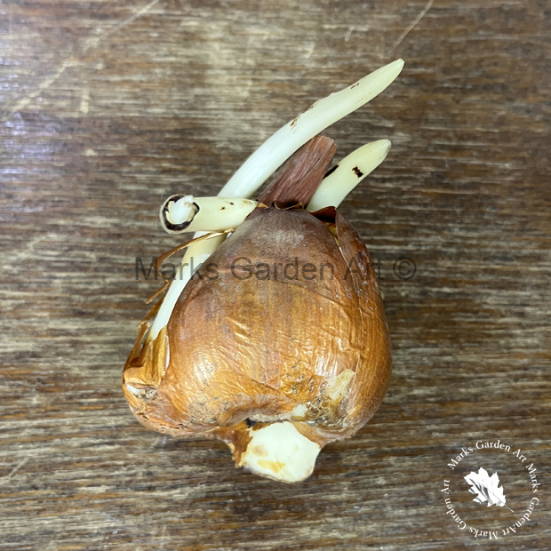 芽が出て、お皿の上に置いておくだけ(水も土も肥料も不要)で観賞用の花が咲きます。購入時の今年は室内などで花を楽しみ、花が終わりを迎えたら、鉢植えや地植えへ植え付けると来年の楽しみへと繋がります。