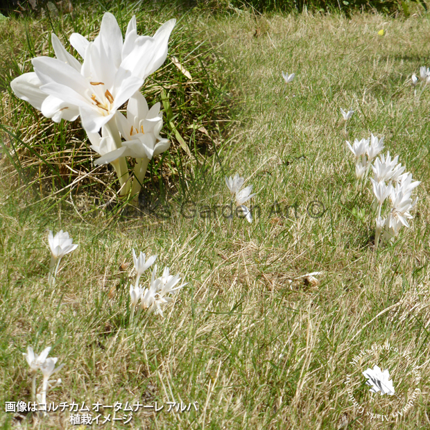 地植えの場合、球根が触れない程度にグループでところどころに植え付けるとナチュラルな雰囲気で夏の終わり~秋頃に花が咲く事でしょう。
