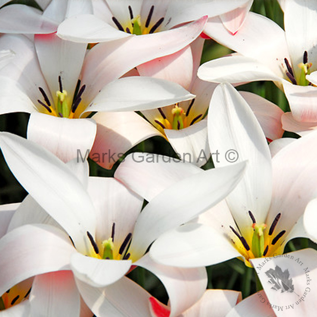 細い茎、清楚で品のある姿は別名チューリップの「貴婦人」と呼ばれています。つぼみの時はピンク、白い花弁にうっすらと黄色が入り、開いていく種