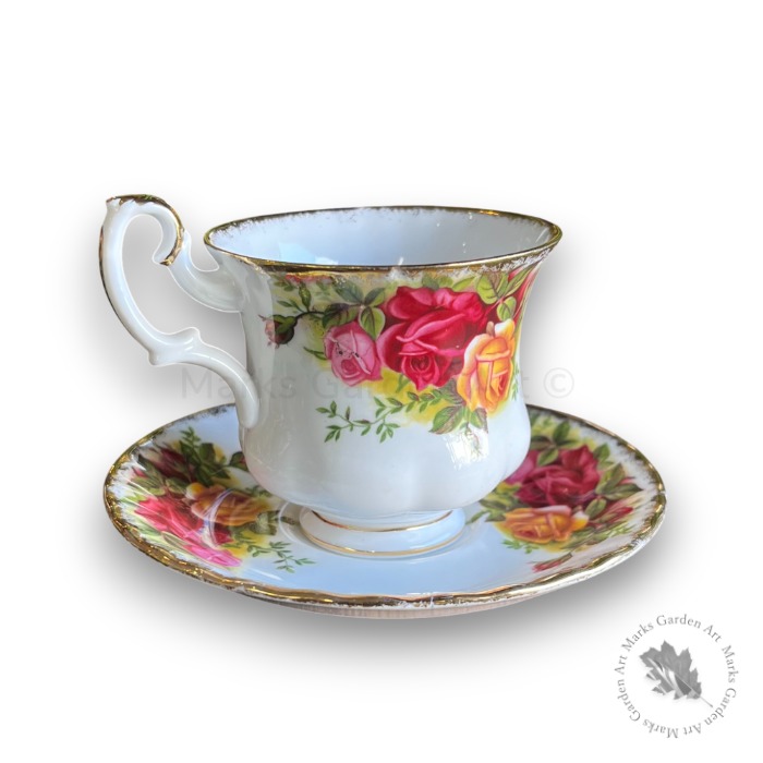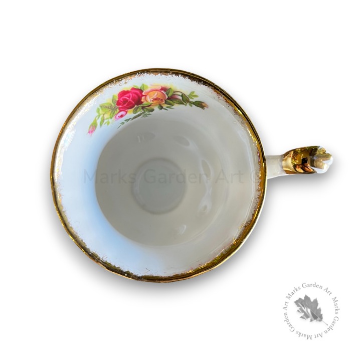 華やかなオールドカントリーデザインのローズ柄も、落ち着いた色調と金彩のアクセントで、日常のティータイムに自然に溶け込む佇まい。