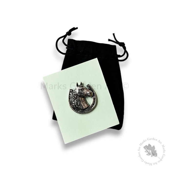 イギリスでも人気のある馬柄で、ピューター特有の落ち着いた銀色の質感が上品で、バッグや帽子、ストールのワンポイントとしても使いやすいデザインになっています。