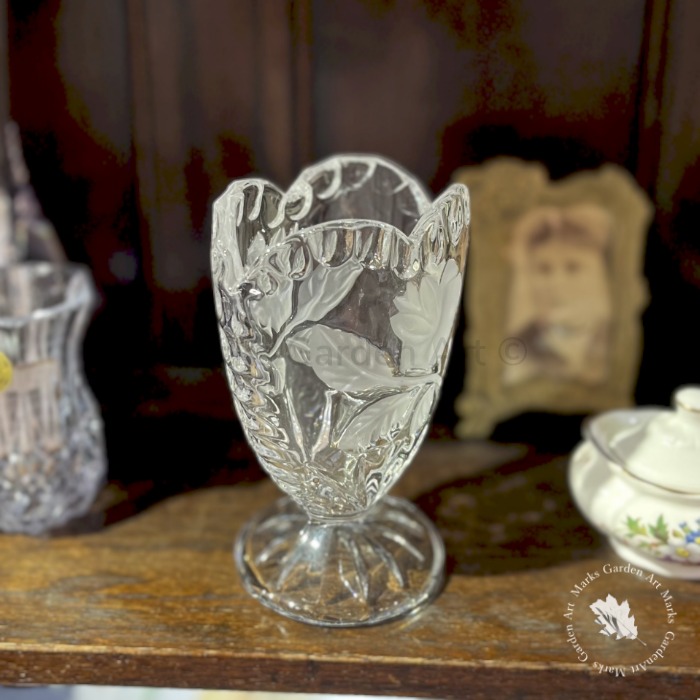 イギリスから届いた、バラの花びらを思わせる縁取りが美しいヴィンテージガラスベース。