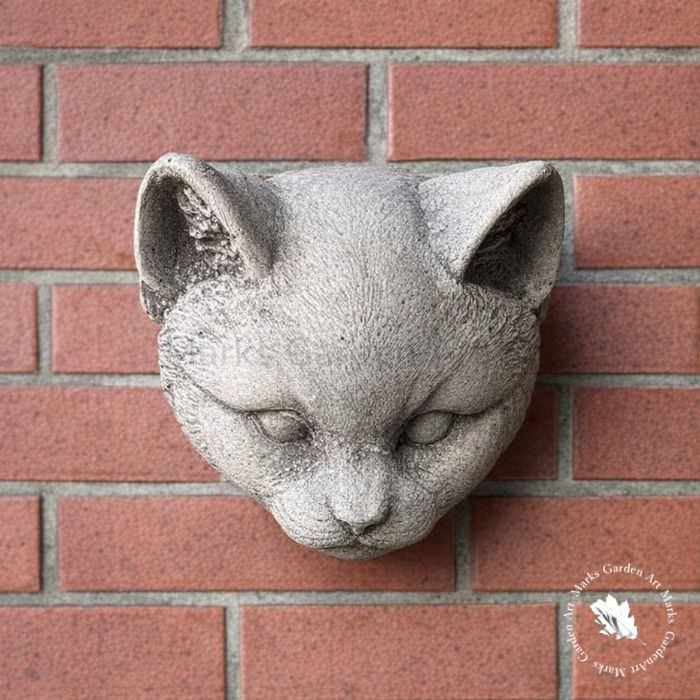 英国製ストーンガーデンオーナメント:レリーフ 猫の顔(壁掛け)