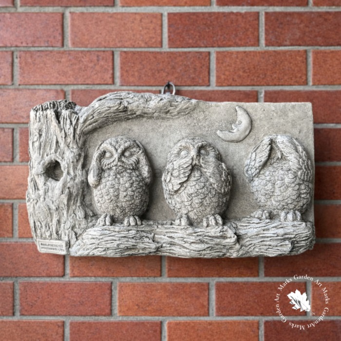英国製ストーンガーデンオーナメント:レリーフ 賢いフクロウ(壁掛け)