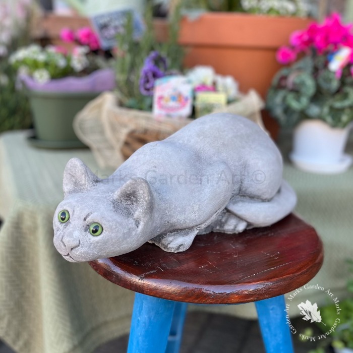 英国製ストーンガーデンオーナメント:獲物を狙う猫(置物)【ラスト一点】