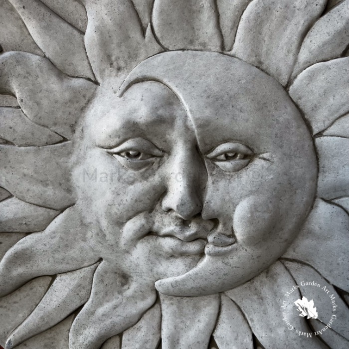英国製ストーンガーデンオーナメント:レリーフ 太陽と月(壁掛け)
